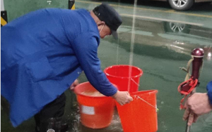 | 五月汛期即將來臨,高正集團(tuán)低溫中心項(xiàng)目部白班保安在外圍巡邏時(shí)發(fā)現(xiàn),外圍排水溝內(nèi)有許多罐車檢驗(yàn)后的殘?jiān)、淤泥、鐵銹等 |