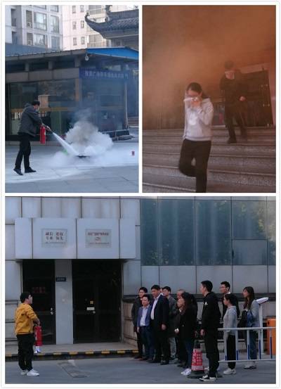 二、消防疏散演習。投資廣場模擬了火災場景,在遇險第一時間如何正確逃生進行了現(xiàn)場實踐。大家用毛巾捂著口鼻,貓著腰,有序地從消防樓梯緊急疏散。通過演習也使大家從理論知識轉化為實踐。