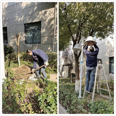 低溫中心院內(nèi)改造,院區(qū)綠化都將進(jìn)行一次翻天覆地的改造。由于是二次改造,施工人員對(duì)地下管道鋪設(shè)不太了解,所以第一天施工路燈線(xiàn)就被挖斷。高正集團(tuán)物業(yè)服務(wù)部為保障院區(qū)設(shè)施設(shè)備正常使用,立即抓緊搶修,同時(shí)也將院內(nèi)的一系列老化損壞的路燈進(jìn)行排查維修。