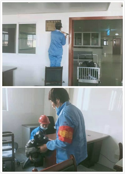 接到通知后,項(xiàng)目主管立即召集所有機(jī)動人員帶著鏟刀、刮刀、掃把等保潔工具趕到門診五樓開始清掃工作。首先安排兩名機(jī)動人員專門鏟除墻上的所有宣傳標(biāo)識以及其他膠印,剩下來的員工掃地的掃地,整理桌子的整理書桌,擦墻面的擦墻面......大家分工明確,相互配合,干完自己的任務(wù)就去幫別人干其他的活,擦玻璃、擦墻面、掃地拖地一點(diǎn)的不含糊,大家有條不紊、相互幫忙趕進(jìn)度。