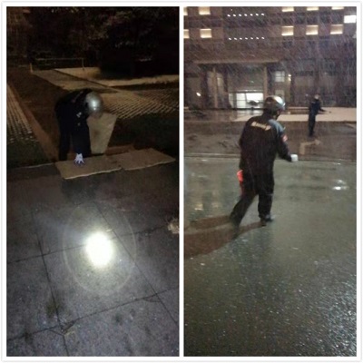 2020年12月底,氣溫驟降,寒風(fēng)凜冽,天空飄起了雪花,到了晚上七八點(diǎn),不少的護(hù)欄、樹木、花壇、車輛....都已經(jīng)有了明顯的積雪。高正集團(tuán)物業(yè)人頂著風(fēng)雪,冒著嚴(yán)寒始終堅(jiān)守在一線,用責(zé)任和擔(dān)當(dāng)為業(yè)主出行保駕護(hù)航。