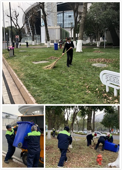 奧體中心面積大,樹木多,常常一夜過來落葉滿地,保潔員的工作量和清運(yùn)垃圾的次數(shù)都增加了不少。那一把把笨拙的掃帚在他們手中仿佛充滿了魔力,把頑皮的樹葉理得服服帖帖,聚成一堆,再倒進(jìn)垃圾桶。保潔主管郁志賢總是和大家一起工作,有的區(qū)域落葉特別多,大家做完各自區(qū)域的活就集中起來一起清掃,掃的掃、搬的搬,抬的抬。面對(duì)著惡劣的天氣和掃不完的落葉,我們不斷提高作業(yè)效果,加強(qiáng)巡檢督查,盡力維護(hù)奧體的干凈整潔。