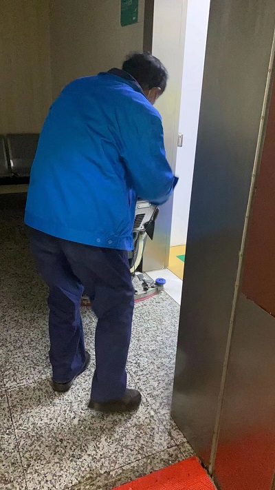 接到通知后,門診主管一邊趕往實(shí)驗(yàn)室查看現(xiàn)場(chǎng)的情況,一邊打電話給機(jī)動(dòng)人員,告訴他們準(zhǔn)備好吸水機(jī),去現(xiàn)場(chǎng)協(xié)助清理積水。到了PCR實(shí)驗(yàn)室一看,水已經(jīng)漏的漫延到門口了。門診主管讓機(jī)動(dòng)工友先用大型的吸水機(jī)處理通道上的水,并讓實(shí)驗(yàn)室的保潔員把倉(cāng)庫(kù)里地上的物資全部搬到桌子上,再讓另外一個(gè)工友用吸水機(jī)清理房間內(nèi)的積水,最后保潔員將實(shí)驗(yàn)室地面、桌椅等全部用消毒水進(jìn)行消毒。