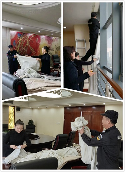 臨近春節(jié),這兩天氣溫回升,高正集團(tuán)低溫中心項(xiàng)目主管組織物業(yè)員工把三樓地毯房的窗簾全部拆下來(lái)清洗。