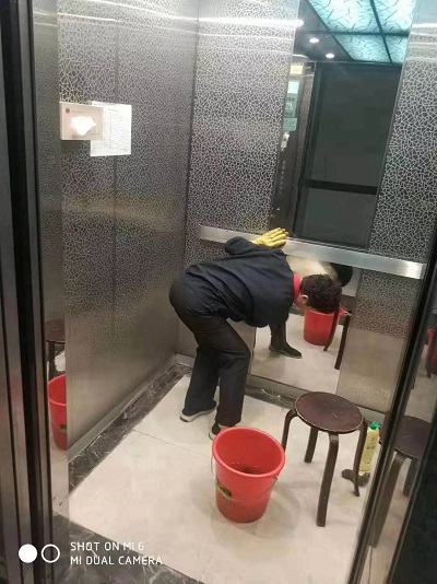近日,煙草項(xiàng)目1-14辦公大樓幕墻裝修已全面竣工,所有的保潔人員進(jìn)入全面清掃工作,尤其是電梯里面,施工期間為防止電梯表皮磨損,整個(gè)電梯用木板包裝起來。如今施工結(jié)束,電梯里面的木板要全面拆卸下來,由于包裝時(shí)間過長,導(dǎo)致電梯表面、地面留有污跡,清潔難度有點(diǎn)大。保潔班長與一名保潔員開始全面對電梯內(nèi)各個(gè)角落進(jìn)行細(xì)節(jié)大掃除,首先保潔人員拎來一桶水,并將抹布浸入配制好清潔劑的水桶中,然后拿起擰干,沿著轎廂內(nèi)壁從上往下用力擦抹,若壁上沾有較頑固的污垢或污跡,可直接噴上清潔劑后用抹布用力來回擦抹,再用另外一塊清水抹布徹底清抹一遍。經(jīng)過兩個(gè)多小時(shí)的細(xì)心清潔,電梯瞬間一亮,保潔班長和保潔員臉上都露出了開心的笑容!