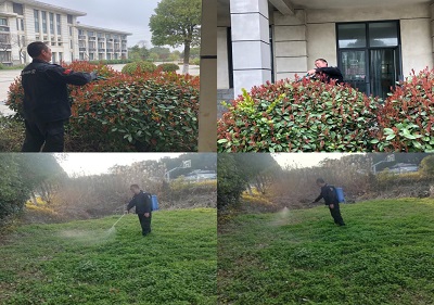 保安員利用周末時間,自己動手對園區(qū)的綠化修剪,對園區(qū)內(nèi)開展了拔除雜草,工作人員不畏辛苦,背上重重的噴霧工具,噴灑農(nóng)藥。經(jīng)過幾個小時的作業(yè),園區(qū)內(nèi)的綠化修剪完畢, 隨后將地面上的雜葉清理干凈,園區(qū)的環(huán)境煥然一新,愛護(hù)園區(qū)環(huán)境、美化園區(qū)人人有責(zé),致敬綠化背后的美容師。