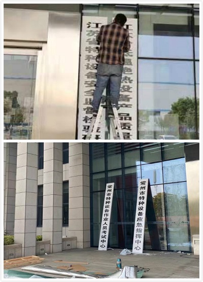 低溫中心公司大門的標牌由于年數(shù)已久,大風一吹標牌就會有松動滑脫現(xiàn)象,影響到大門口的形象以及安全問題,物業(yè)把問題向甲方上報后,院領導協(xié)商決定更換大門標牌。