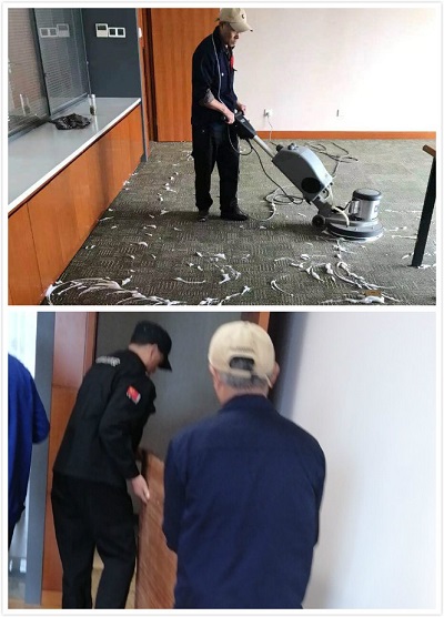 空置已久的房間由于年數(shù)較長,地毯、墻面、窗戶、窗簾都已經(jīng)破舊損壞。物業(yè)快速執(zhí)行力和快速響應(yīng)發(fā)揮優(yōu)勢,我們立即安排人員分工合作務(wù)必將任務(wù)一天之內(nèi)完成。專項(xiàng)人員負(fù)責(zé)清洗兩個(gè)房間的地毯,保安師傅負(fù)責(zé)調(diào)整桌椅,保潔負(fù)責(zé)將辦公室的清潔衛(wèi)生包括柜子、玻璃等邊邊角角清潔到位,維修師傅負(fù)責(zé)安裝窗簾以及更換維修燈管,管理部負(fù)責(zé)綠植擺放。大家各司其職,盡心盡力,井然有序的做著自己工作,下午4點(diǎn)已經(jīng)把兩個(gè)辦公室收拾出來了,干凈的地毯還散發(fā)著香味,整理出了一個(gè)光亮整潔的環(huán)境。
