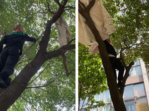 我們在接到業(yè)主求助后,總能在力所能及的范圍內(nèi)第一時(shí)間進(jìn)行處理,急業(yè)主所急。在五一小長假內(nèi),1幢業(yè)主晾曬在戶外的床單被風(fēng)吹掛在樹上,徐師傅接到業(yè)主求助后,第一時(shí)間就拿起梯子前往現(xiàn)場。他不顧自身安危,攀爬上樹幫業(yè)主取下床單,及時(shí)解決了業(yè)主的困擾。