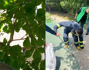 隨即我客服人員立即撥打119電話求助,在消防人員還未到場前,錢主管與維修師傅們就用彩帶拉起圍檔,防止有不了解現(xiàn)場情況的業(yè)主進入“危險區(qū)域”。