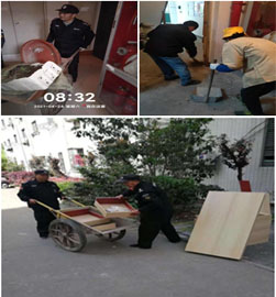 在此期間,我們小區(qū)物業(yè)中心積極協(xié)助配合社區(qū)完成工作,我們的保安員不辭辛苦地在6點就開始工作,清潔各個樓棟樓道內(nèi)的雜物堆放。過程中也遇到了一些難以清理的雜物,我們保安員也會協(xié)同我們的保潔員一起將樓道中的雜物一層一層的清理干凈。
