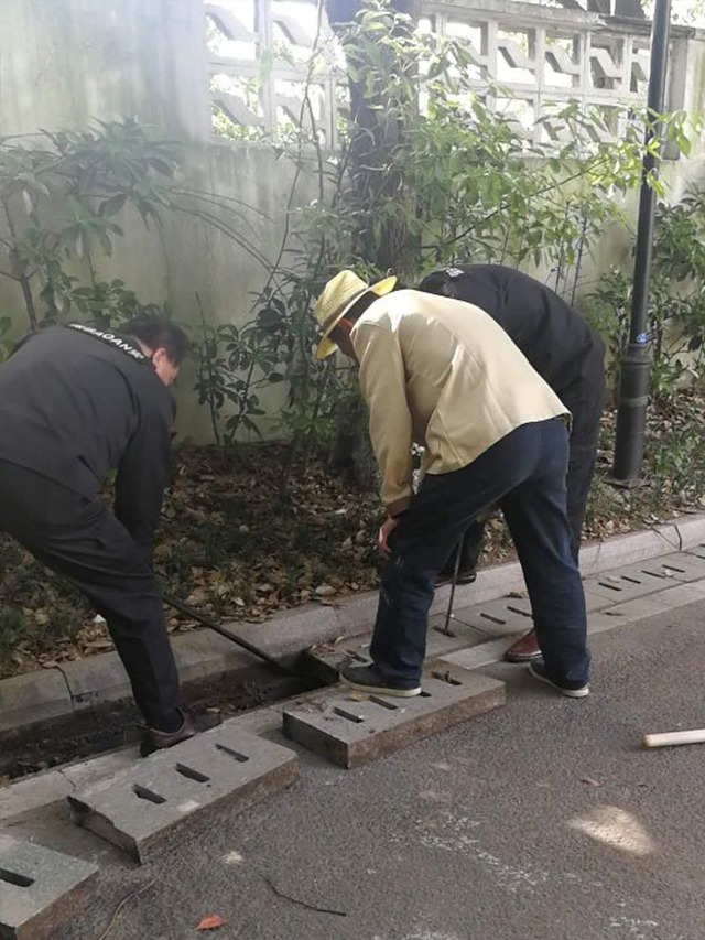 水務(wù)大廈后院的香樟樹(shù)生長(zhǎng)茂盛,有大量的落葉落入停車(chē)場(chǎng)四周的排水溝,枯枝爛葉經(jīng)過(guò)腐爛堵塞了溝渠。2019年5月8日星期三,項(xiàng)目管理部組織員工清理疏通停車(chē)場(chǎng)四周的排水溝和清理甲方裝修遺留下來(lái)的建筑垃圾。排水溝的清理是養(yǎng)護(hù)工作的重點(diǎn),若是溝里的垃圾不及時(shí)清理疏通就會(huì)造成排水溝堵塞現(xiàn)象,遇到暴雨時(shí)泄水就會(huì)不通暢,也會(huì)影響車(chē)輛和行人的安全。我們的員工不怕臟不怕累,拿著鐵鍬將枯枝爛葉清理掉,保障排水溝通暢,盡量降低雨水對(duì)路面的損害,為過(guò)往和停放的車(chē)輛創(chuàng)造了良好安全的通行和停靠環(huán)境。接下來(lái)又將清理出來(lái)的泥土全部倒入綠化根部,綠化屬于有機(jī)肥料既解決了泥土的堆放又幫助綠化施肥,一舉兩得。在大家的共同努力下,用了一天的時(shí)間排水溝清理完畢。