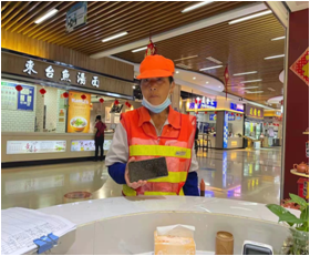 保潔員張松芳在西區(qū)廣場(chǎng)打掃衛(wèi)生時(shí)撿到手機(jī)兩部(7:50撿到VIVO手機(jī),13:25撿到華為手機(jī)),保潔員立即聯(lián)系值班管理員并說(shuō)明撿手機(jī)的經(jīng)過(guò),地點(diǎn),管理員立即趕到現(xiàn)場(chǎng),拿著手機(jī)與保潔一起到達(dá)服務(wù)區(qū)服務(wù)臺(tái)。