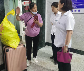 近日投資廣場客服在一樓巡查時遇到一個問路的阿姨,阿姨拿著行李箱還有大包小包的物品,很著急得在尋找著什么,客服人員過去詢問后才得知這位阿姨是要給她的雇主送行李。因為阿姨方言口音太重,溝通起來有些困難,在跟她反復(fù)溝通確認(rèn)后客服人員才得知,她要到20樓找一位周經(jīng)理。