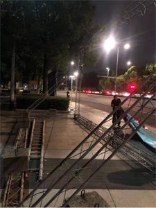 下午4點30左右,一片黑壓壓的云逐步逼近奧體中心,隨之而來的是降溫降雨。頃刻間室外已狂風暴雨,而各場館室內(nèi)早已準備有序。在隊長的帶領(lǐng)和崗位安保人員有序的工作安排下,奧體內(nèi)部一切正常。晚上大風沒有一絲減弱的跡象,當班隊長帶著巡邏保安,在奧體內(nèi)部一圈又一圈的巡邏,深怕廣告桁架被大風吹倒而引發(fā)重大事故。晚上9點多,很多廣告牌都已被大風摧殘得支零破碎,固定廣告牌的繩子也被扯斷。隊長當即決定帶領(lǐng)巡邏崗人員將吹壞的廣告牌全部收回,將還完好的廣告牌重新固定。