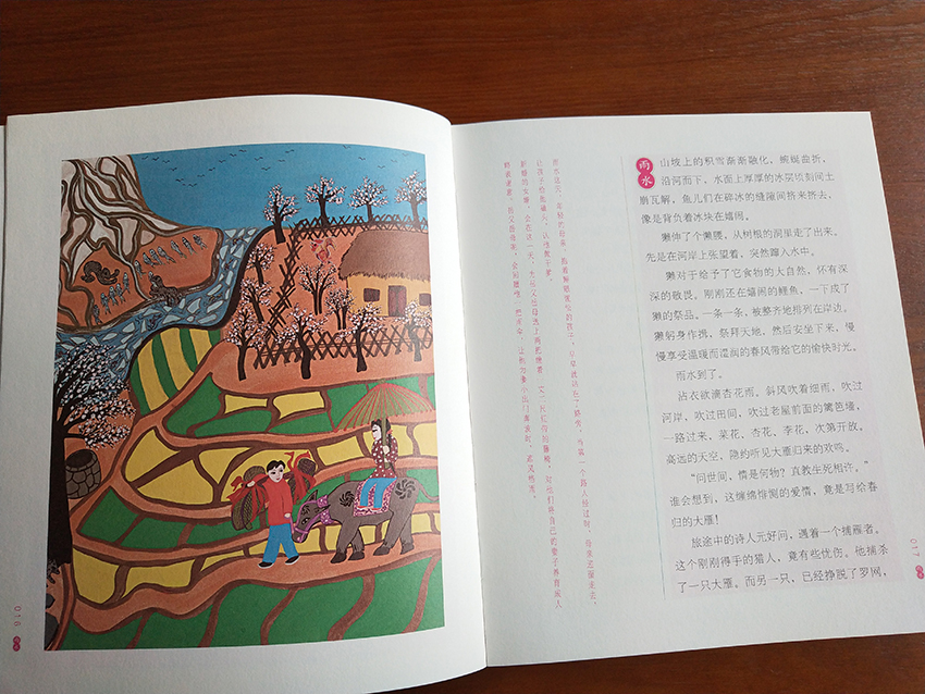 就是這樣,帶著一種愉悅、好奇、求知的心情,走進(jìn)《光陰——中國(guó)人的節(jié)氣》的世界。我總是先看農(nóng)民畫,再讀文字,兩者相映成趣,相得益彰。這本書文字清新淡雅,詩(shī)詞歌賦、鄉(xiāng)風(fēng)民俗,在作者詩(shī)情畫意的描述中娓娓道來(lái)。作者旁征博引,由淺入深,通俗易懂,妙趣橫生,富于哲理,令人不時(shí)掩卷沉思。