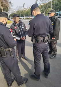 這天上午大概10.30分左右,奧體中心項(xiàng)目部的保安員在正常執(zhí)勤巡崗,他突然發(fā)現(xiàn)在奧體中心鳥(niǎo)巢的三岔路口處,有一名七十左右的大爺在路中心兜兜轉(zhuǎn)轉(zhuǎn)不知道要干嘛,保安發(fā)現(xiàn)以后上前詢(xún)問(wèn)。問(wèn)他家住那里,大爺支支吾吾的也說(shuō)不清楚,在他身上也沒(méi)有發(fā)現(xiàn)手機(jī)和任何聯(lián)系方式。我們保安第一時(shí)間先把他帶到值班室,不讓他在馬路上亂跑發(fā)生交通事故。到值班室我們第一時(shí)間聯(lián)系了三井派出所,三井派出所來(lái)了兩名警察進(jìn)行了咨詢(xún)調(diào)查,然后聯(lián)系到了他的家人,并第一時(shí)間通知家人來(lái)接他,他女兒趕過(guò)來(lái)把老人帶走,通過(guò)交談才知道老人因?yàn)樯。隽四X部手術(shù)只有半個(gè)腦袋,意識(shí)不是很清楚。因而獨(dú)自從家里走出卻不記得回家地址。大爺家人對(duì)我們表示感謝;:要不是你們,家里人還在外面找他。