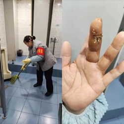 近期在日常保潔過(guò)程中,童家香不小心被尖銳的物品劃傷了手指,去醫(yī)院做了處理后,醫(yī)生建議他在家休息,不要接觸水,但童家香仍堅(jiān)持上班。“這點(diǎn)小傷沒(méi)關(guān)系,大樓里保潔本來(lái)就不夠,我再回家休息,不是給大家增加負(fù)擔(dān)。我自己做好防護(hù)就行,盡量不加重傷情,也不給大家添麻煩!