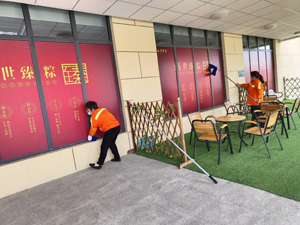 她們互相分工,又通力合作,大家有說(shuō)有笑,配合默契,一派繁忙熱鬧的勞動(dòng)景象。終于,在經(jīng)過(guò)一下午的勞作中,衛(wèi)生清掃工作全面完成,我們的服務(wù)也收獲了甲方的贊揚(yáng)。
