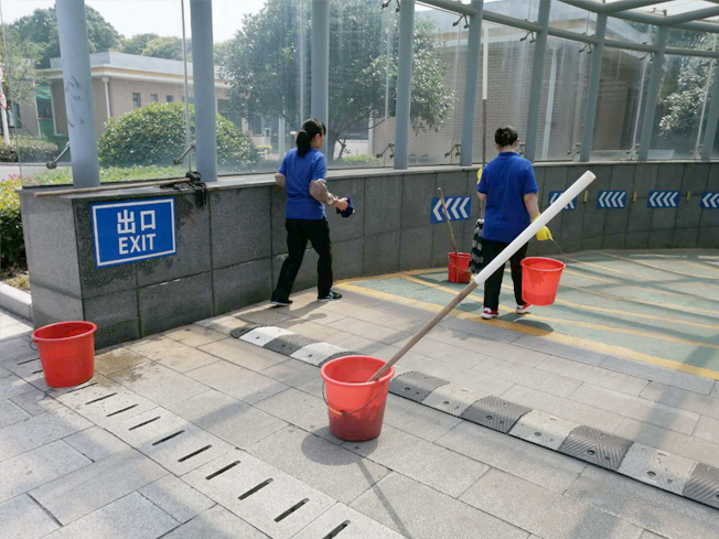 此次清掃工作量較大,保潔員們?cè)谧龊帽韭毠ぷ魍,在保潔主管的帶領(lǐng)下開展清掃活動(dòng),大家手拿水桶、抹布及拖把,全身心投入到大掃除中,齊心協(xié)力,干的熱火朝天,顧不上汗?jié)竦囊陆,不放過任何一個(gè)衛(wèi)生死角,經(jīng)過一番努力,地下車庫(kù)通道煥然一新。