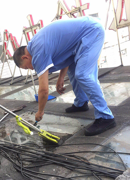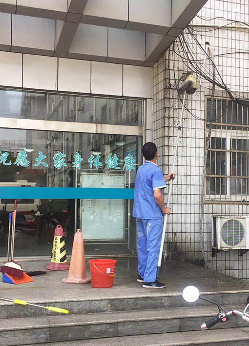 “好醫(yī)館”醫(yī)療事業(yè)部啟東人民醫(yī)院項目部,2019年7月18日,項目經(jīng)理接到總務科通知,由于之前拆除了老樓,北區(qū)體檢中心外的雨棚上有大量積灰,需要徹底的清除打掃一下。接到通知后,項目經(jīng)理第一時間通知了門診主管安排了任務,門診主管到現(xiàn)場看了下衛(wèi)生情況,外雨棚上堆了一些雜物,還有青苔,上面也比較濕滑,查看完情況后便通知了機動工友帶上相關的保潔工具趕到現(xiàn)場打掃衛(wèi)生。機動工友將上面的電線固定起來,再用鏟刀將上面的積灰、青苔鏟除,再用清潔劑、海綿拖把拖干凈,最后再將雨棚下面的玻璃都擦干凈。急時有效地完成了總務科安排的任務,我們的服務也得到了體檢中心科室主任以及護士長的一致好評。