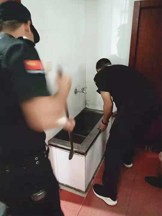 為了能正常使用,保安人員江榮海、蔣國明、保潔阿姨莊菊妹一起自告奮勇地進(jìn)行疏通,剛開始想用鐵絲疏通好的,可下水道像頑皮的孩子似的,一點(diǎn)都不領(lǐng)情,后來又找來皮老虎來回地吸,這次終于有了點(diǎn)效果,臟水終于慢慢地流出了水池?蛇@也是治標(biāo)不治本的,為了徹底把水池弄通暢,找出源頭,兩位保安大哥又找來鐵撬,把水池給撬開,這下終于露出了它的“廬山真面目”。原來是業(yè)主平時(shí)把喝剩下的茶葉倒在了水池里,日積月累水池下的塑料管道給堵住了。污垢死死地吸附在了水管上才導(dǎo)致的。經(jīng)過了二個小時(shí)的奮戰(zhàn),下水管終于又“神采奕奕”地暢通無阻了,三個人也喜滋滋地露出了滿意的笑容。
