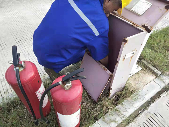 全場地的滅火器將近有百來個,所以清理起來工程量也是非常巨大,我們先從科二五個區(qū)內(nèi)的滅火器、滅火箱擦拭,因有些滅火箱的使用時間過長,導(dǎo)致滅火箱上油漆都脫落,擦拭的時候只能輕輕的,防止其他處的油漆也脫落;有些滅火箱是放在泥土里,箱子的底部的泥土擦拭不掉,只能用鏟子輕輕給它鏟干凈,滅火箱內(nèi)的臟東西也要用鏟子一點點的鏟出來。滅火器擦拭時也要非常的小心,擦的時候不能將滅火器的插銷給弄掉。維保人員在擦拭前都會對滅火器進行檢查,滅火器壓力表是否有損壞、變形等缺陷;壓力值是否正常(綠色值為工作壓力值);壓把、閥門等金屬件是否有銹蝕;噴管是否有老化、堵塞;如有問題,應(yīng)及時上報更換。