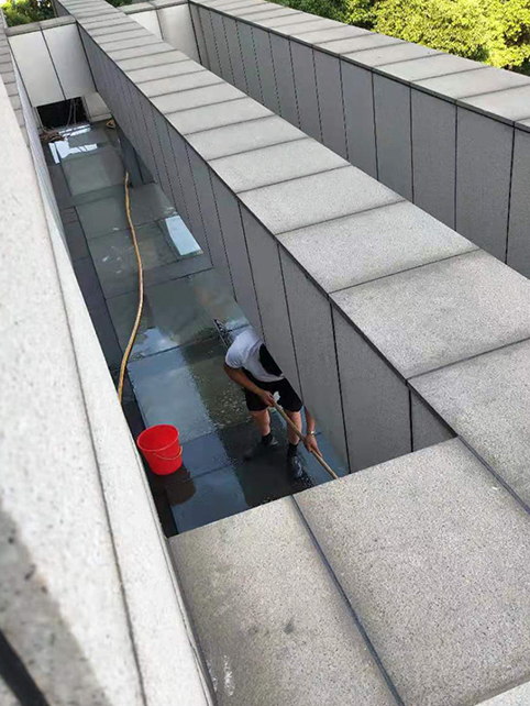 2019年9月25日星期三,雖然陽光還是很猛烈,各位師傅還是不辭辛苦的爬上了A座大門口三樓的高樓平臺進行清洗,二樓平臺由于清洗難度較大所以一直都在商量以什么方式上去,然后怎么運水過去進行清洗,經過商討之后我們決定從三樓的窗戶上爬到二樓窗臺上從外面接大水管接到二樓平臺進行清洗,由于是高空作業(yè)且進行清洗工作的師傅年紀也都偏大,所以我們在每個師傅身上系上安全繩,并進行了高空作業(yè)安全方面的知識普及,各位師傅爬上高臺用刷板清洗了近2個小時,終于把二樓玻璃平臺清洗的干干凈凈,下來之后主管看到門口的地毯有灰塵,平時接水管非常麻煩,這次想著一起清洗干凈,雖然經歷了兩個小時高空作業(yè),師傅們還是把門口的地毯沖刷了,可以讓A座的大門口更加干凈整潔,忙碌了半天之后A座的平臺和地毯都恢復到干凈整潔,喜迎國慶!
