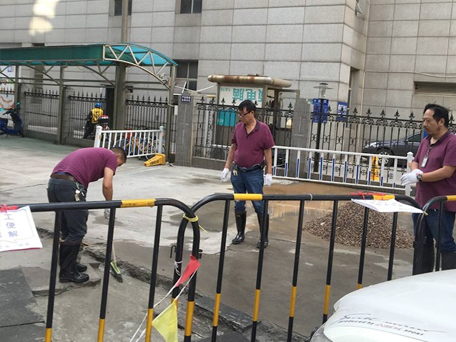 因常州投資廣場是一座20幾年的老大樓,在東面廣場由于長期的汽車碾壓和人員的進出造成了地面的破損嚴重。投資廣場項目部領導決定利用國慶假期人員放假車輛減少的情況下對廣場的地面進行全面的修復。工程部的師傅們先對破損的地面進行開挖再買來水泥石子進行攪拌,由于天氣悶熱師傅們的臉上和身上就汗流如柱,但是他們也管不了那么多,一心就想著把破損的地面弄好,只見他們有的人和水泥,有的人把攪拌號好的水泥倒入破損開挖的路面上,還有的師傅用膩子一點一點把水泥磨平。項目部客服在東面廣場拉起警示條和張貼溫馨告示,欄起警示柵欄,提醒過往的人員和車輛注意,以免發(fā)生意外。在各部門的協(xié)助下,不一會投資廣場東面廣場破損地面的修復工作就完成了。雖然天氣悶熱大家都汗流浹背,但是能為投資廣場的所有業(yè)主服務,能得到他們的肯定,項目部所有的員工沒有一句怨言。為了業(yè)主的滿意和微笑,項目部人員將再接再厲更好的為他們服務。