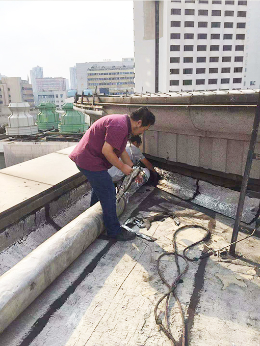 投資廣場由于時代久時間長,再經過常年的風吹日曬在原來樓頂做過防水的地方就會出現一些細小的裂縫。在平時天氣晴朗的情況下,這些小裂縫會不起眼,但是在下雨和惡劣的天氣情況下就會出現問題。雨水會沿著這些小裂縫慢慢的滲漏到下面去。雖然下面是會議室,但是為了更好的為業(yè)主服務,及業(yè)主所急,更好為業(yè)主所想,投資廣場項目部決定對樓頂平臺進行防水施工,徹底為業(yè)主解決滲水問題。項目部選擇優(yōu)秀有資質的防水施工隊。施工人員和工程部戴師傅一起爬上樓頂平臺,一邊試著漏水點,一邊做著標記。把原來的材料一點一點的剝離。由于樓頂風大,人站在上面好像要被風隨時吹走似的。但是為了更好的為業(yè)主服務師傅們克服心里的恐懼。拿著施工工具噴槍和防水棉小心翼翼的一點一點把查找到的漏水點修補好。時間過得好快一轉眼大半天過去了。這時師傅們才感覺肚子在咕咕叫,才想起還沒有吃飯呢。雖然忘了吃飯,但是能為業(yè)主排憂解難是最大的欣慰。也是投資廣場項目部最大的目標。