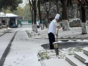 廚房的徐師傅就在食堂周圍臺階上清理了安全通道,為甲方公司人員出行消除了安全隱患。這場降雪不僅帶來了嚴(yán)寒,更見證了物業(yè)人的擔(dān)當(dāng)。詮釋了 “平凡崗位也能傳遞溫暖” 的真諦,成為冬日里最動人的風(fēng)景。