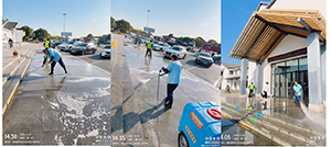 淹城服務(wù)區(qū)東西區(qū)門(mén)口因油漬、吐痰而斑駁,由于面積較大,若僅依賴(lài)傳統(tǒng)的人工刷洗方式,不僅耗時(shí)耗力,清潔效果也難以保證。所幸,單位配備了專(zhuān)業(yè)的洗地機(jī)和刷地機(jī),能夠高效完成大面積地面的清潔任務(wù)。然而一天完成兩邊的刷洗及清潔任務(wù),我們的保潔工作量增加耗時(shí)久,也影響顧客對(duì)服務(wù)區(qū)的體驗(yàn)。