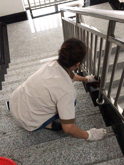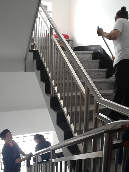 常州特檢院大樓投入使用已有十幾年,大樓樓梯間墻面受潮破損嚴重,影響美觀。特檢院項目部與甲方領(lǐng)導協(xié)商決定利用國慶假期人員放假的情況下對樓梯間墻面進行全面修復。假期第二天,施工人員進院操作,物業(yè)安排人員協(xié)助其工作,先對墻面破損地方鏟除并用膩子修補,再用乳膠漆對墻面進行全面噴漆,在大家辛苦的努力下,終于完成了墻面修補。前期工作的完工,預示著物業(yè)后期打掃也要進入一個新的征程。一到七樓,整個地面鏟下來的墻皮和灰塵以及墻面脫落的油漆,讓人無從下腳。但是我們的保潔人員不怕臟不怕累,分工明確,有條不紊加班加點的在甲方上班前完成了整個大樓的清理以及細節(jié)衛(wèi)生打掃。雖然大家都汗流浹背,灰頭土臉,但是看著嶄新的墻面地面,項目部所有的員工都露出了欣慰的笑容。