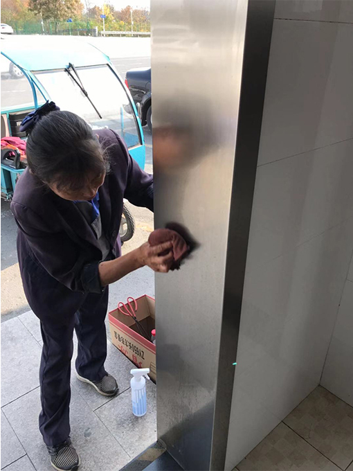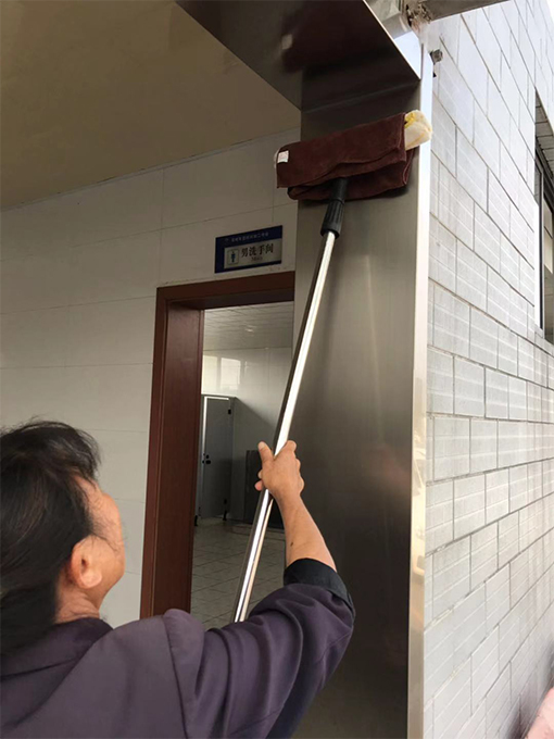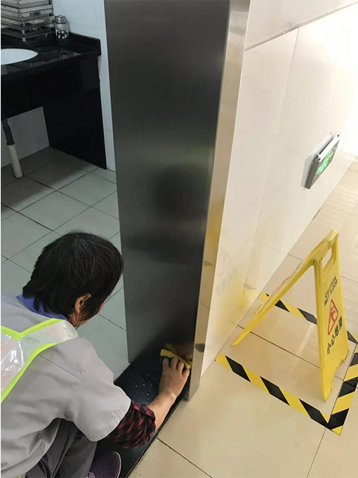 像考訓(xùn)中心內(nèi)區(qū)域較大,房屋較多,使用到不銹鋼的地方也是非常多的。有的不銹鋼門框、扶手都是室外的,經(jīng)過風(fēng)吹雨打的,上面都出現(xiàn)了一層斑斑點(diǎn)點(diǎn),十分難看。因此我們安排保潔員對場內(nèi)的不銹鋼扶手、門框進(jìn)行了專項(xiàng)養(yǎng)護(hù)工作。