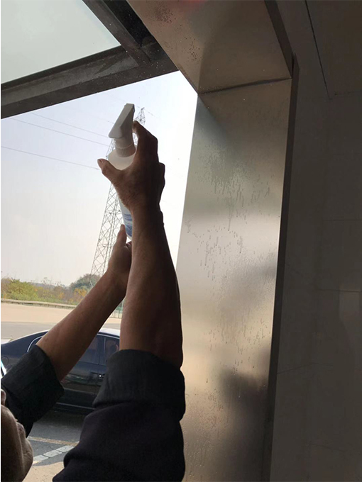 因工具有限,我們便使用干凈的干毛巾和不銹鋼光亮劑進(jìn)行保養(yǎng)。首先,為防止藥劑的使用量,先將大瓶的不銹鋼光亮劑倒入小瓶的噴壺瓶內(nèi),然后用噴壺將不銹鋼表面均勻的噴灑,再利用干凈的干毛巾順著不銹鋼的紋路,先將油劑均勻的涂抹一層;最后用干凈不脫絨的布順著紋路輕擦幾下,抹去厚的油和部分毛絨,保持光亮。其實(shí)對于不銹鋼的養(yǎng)護(hù)日常中也是十分重要的。不銹鋼不能經(jīng)常用帶水的毛巾擦拭、也不能使用如鋼絲球之類的尖銳的工具擦拭,以防刮傷表面。在擦拭不銹鋼門框表面時(shí),可采用干的軟布進(jìn)行擦拭;如有手印,可用哈氣打濕后,再用軟布擦拭;如污跡太重可使用中性清洗劑、牙膏或者家用清洗劑去污,再立即擦拭干凈。為保持不銹鋼門表面光澤和使用壽命,應(yīng)定期的進(jìn)行清潔、除塵,可使用不銹鋼制裝修產(chǎn)品專用的養(yǎng)護(hù)液對其表面進(jìn)行養(yǎng)護(hù)。