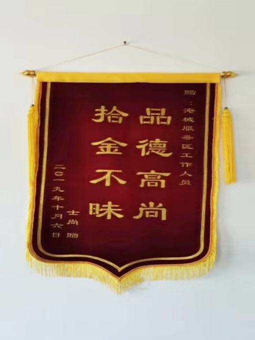 近日,高正集團淹城服務(wù)區(qū)項目接到一面題有“拾金不昧、品德高尚”的錦旗,感謝淹城服務(wù)區(qū)工作人員拾金不昧的高尚品德和盡職盡責(zé)的服務(wù)精神。