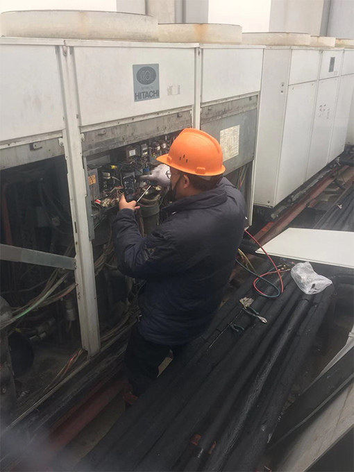 這么冷的天,我們的丁主任帶著空調(diào)維修師傅老方到頂樓檢查空調(diào)外機(jī),為了達(dá)到最佳效果,在充分聽(tīng)取專業(yè)技術(shù)人員的分析和多方咨詢后,不惜增加投入進(jìn)行除垢處理以提升系統(tǒng)的熱效率。為了保障2019年冬季的供暖正常運(yùn)行,公司在夏季空調(diào)剛停運(yùn)就立即督促項(xiàng)目開(kāi)始進(jìn)行,通過(guò)一段時(shí)間的施工,11月底,重新維修和效率提升后的空調(diào)一次開(kāi)機(jī)成功,投入正常使用。
