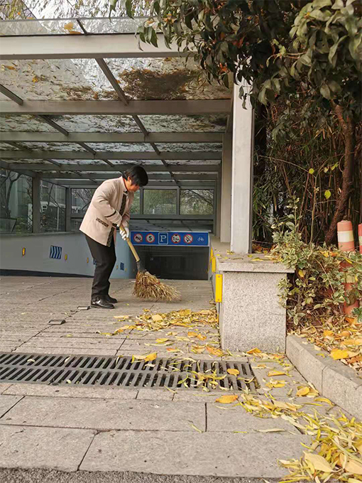 樹(shù)葉紛紛落下,影響小區(qū)內(nèi)的環(huán)境衛(wèi)生,為了給業(yè)主營(yíng)造一個(gè)良好的生活環(huán)境,保證道路的干凈整潔,丁主任要求保潔阿姨加大清掃力度,做到落葉清掃日落日清,采用落葉裝袋,對(duì)落葉較多的道路重點(diǎn)加強(qiáng)巡回保潔,使小區(qū)主次干道的落葉得到了及時(shí)清掃。