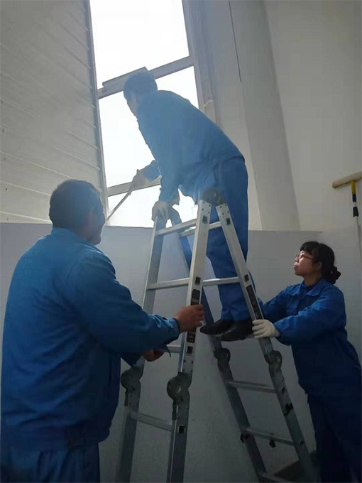 從車(chē)間樓梯高層拐角的打掃到樓梯假草坪的清洗,從垃圾桶的清洗到各車(chē)間屋檐的沖洗;從撣撈南門(mén)雨棚內(nèi)灰塵、蜘蛛網(wǎng)到溝渠垃圾的打撈,各車(chē)間各區(qū)域責(zé)任到人,默契配合按照計(jì)劃有序的清理打掃。專(zhuān)項(xiàng)人員每天計(jì)劃性的刮洗6個(gè)車(chē)間內(nèi)外窗戶(hù)玻璃,利用休息日清洗玻璃屋檐;管理人員巡查各車(chē)間出貨空置的區(qū)域進(jìn)行有序清洗,為車(chē)間后期放置設(shè)備做好環(huán)境衛(wèi)生。