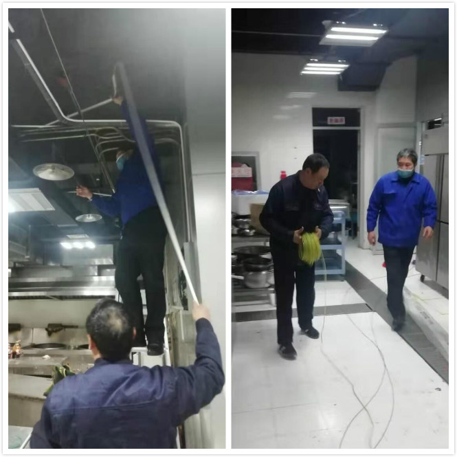 甲方食堂管理員心急如焚打電話來求助我們物業(yè),雖然食堂不是屬于我們服務的范圍,但是在這緊要關頭,物資不是很充足的情況下更不能讓冰箱里的食物造成浪費,于是管理部立即叫來我們的維修師傅,我們的維修師傅接到電話后立即趕來,戴好口罩,做好防護,扛起梯子,背起工具包就上了三樓食堂檢查線路。水務大廈十幾年的老線路破舊不堪,查找毛病還是比較繁瑣,我們的維修師傅一點一點的排查,終于找到頑癥經(jīng)過一下午的努力,終于將食堂線路修理好了,甲方也對我們表示贊揚。