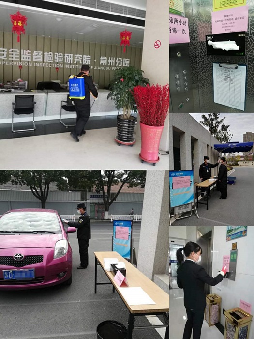 特檢院全體物業(yè)人員在甲方人員上班前已經(jīng)提前到崗,對園區(qū)進(jìn)行打掃、消毒,大門口張貼溫馨提示。并在門崗設(shè)置了消毒臺桌和體溫槍,每一個進(jìn)入園區(qū)的人員都要測量體溫,體溫正常方可登記入內(nèi)。當(dāng)工作人員進(jìn)入電梯,會有更大的發(fā)現(xiàn),每個電梯里面和外面都有一盒餐巾紙和溫馨提示,以及兩小時消毒一次臺賬, 能夠明確消毒時間,消除了業(yè)主和用戶的焦慮感。大樓主要入口我們專門鋪設(shè)了消毒毯,讓每一位進(jìn)入大樓的員工都能在消毒毯上走過。