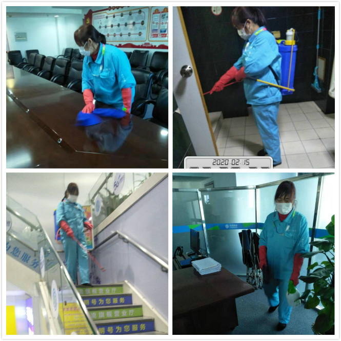 移動(dòng)項(xiàng)目部的保潔員---57歲的肖瑞華,當(dāng)保潔班長已經(jīng)10年了。疫情發(fā)生后,家里人曾勸她離職,她說:“作為一個(gè)保潔班長這個(gè)時(shí)候無論如何都要留下來,做好本職工作,就是為疫情防控做貢獻(xiàn)”。肖瑞華每天5:00多鐘就起床了,一天工作近9個(gè)小時(shí),清掃處理生活垃圾以及營業(yè)廳、電梯等的消毒工作。她每天做好防護(hù)措施,在做好日常保潔的基礎(chǔ)上,背上噴霧器對(duì)公共休息場(chǎng)所,保潔機(jī)具、工具等進(jìn)行定期消毒工作,確保作業(yè)安全。消殺工作每隔兩小時(shí)就要做一次,尤其在防疫時(shí)期,這些工作做得更細(xì),包括大樓的外圍,電梯公共區(qū)域辦公區(qū),每次消殺都做有記錄,確保消殺工作無死角。