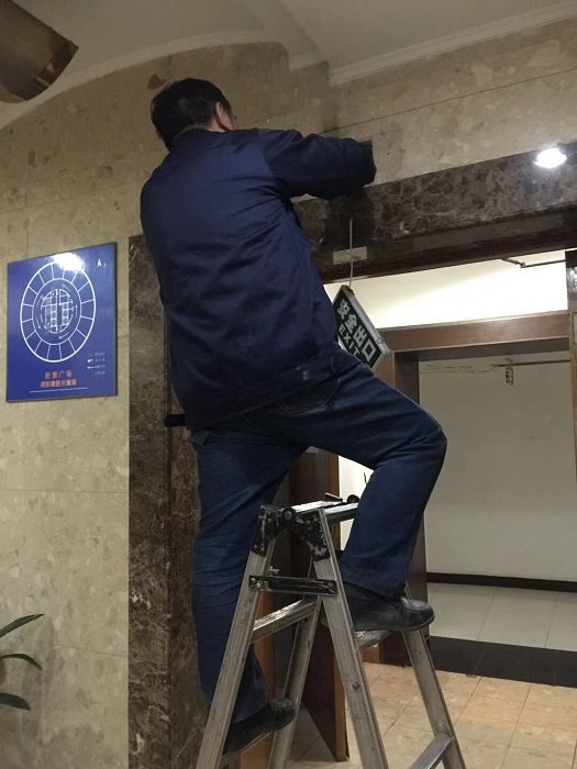 企業(yè)復(fù)工后,上班人員的增多,電梯聲也此起彼伏,投資廣場(chǎng)的員工又要開始一天忙碌的工作了。“叮咚”就看見電梯停在了大樓的8層,隨著電梯門打開,就看見一個(gè)熟悉的身影,那不是投資廣場(chǎng)項(xiàng)目工程部的戴師傅嘛?只見戴師傅騎跨在撐梯上,手里拿著維修的工具在比劃者什么,走近一看原來戴師傅在維修8樓走廊上的安全出口的指示牌。在簡(jiǎn)單打過招呼以后戴師傅笑嘻嘻的說:“早上來巡查的時(shí)候發(fā)現(xiàn)指示牌的電線裸露在外,非常危險(xiǎn)。”他一邊輕聲的說著,一邊手里的絕緣膠布上下飛舞著。不一會(huì)兒,裸露的電線就在戴師傅的手里乖乖的裹進(jìn)了膠布里。戴師傅又拿螺絲刀把指示牌緊緊地按在了出口的墻面上。就在戴師傅按下電源開關(guān)的一瞬間,燈亮了,他笑了。投資廣場(chǎng)項(xiàng)目工程部的戴師傅天天多早早的上班,一到大樓第一件事就是巡查各樓層看看有沒有不好的地方,及時(shí)發(fā)現(xiàn),及時(shí)解決。他天天保護(hù)者大樓業(yè)主的安全。讓業(yè)主有著賓至如歸的感覺。