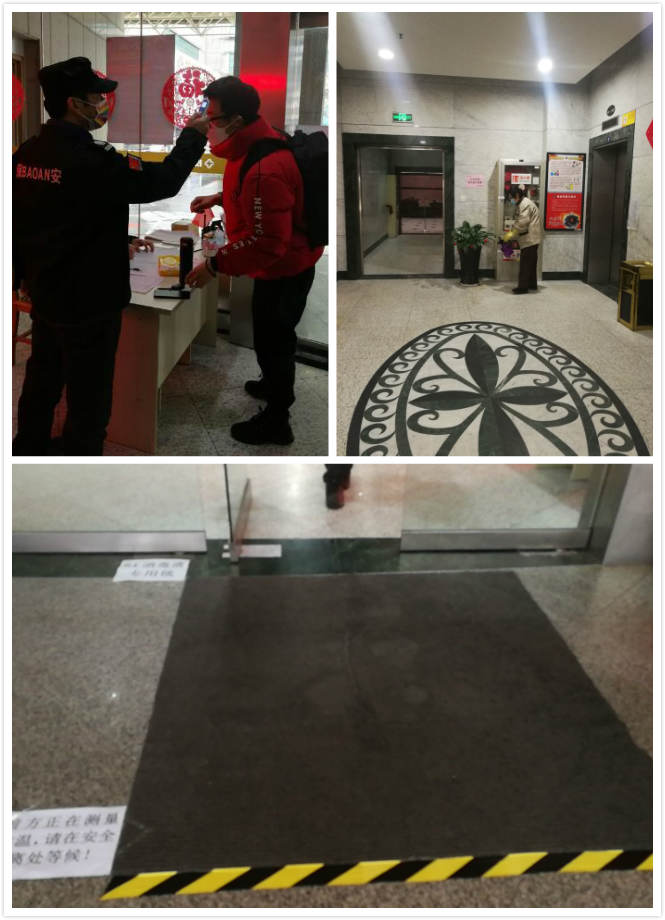 投資廣場(chǎng)的保潔們?yōu)榇髲B進(jìn)行了全面消殺工作。大家在做好全面防護(hù)后,在做完日常打掃后,用稀釋的84消毒液拖地,并將含氯消毒片按照比例調(diào)配好,拿著消殺藥水在大樓各處消毒,對(duì)重點(diǎn)部位如南門大門把手、電梯、垃圾房等重點(diǎn)不間斷消殺。他們每一寸角落都不落下,廁所、門后,消防樓梯及主樓梯等部位都進(jìn)行了一次徹底的消毒。每天兩次及時(shí)的更換電梯案按鈕面板保護(hù)膜。保安也配備了各種消殺物品,嚴(yán)格按照甲方要求的業(yè)主準(zhǔn)出入名單測(cè)量溫度。杜絕一切的意外發(fā)生。業(yè)主也對(duì)我們的工作表示肯定。