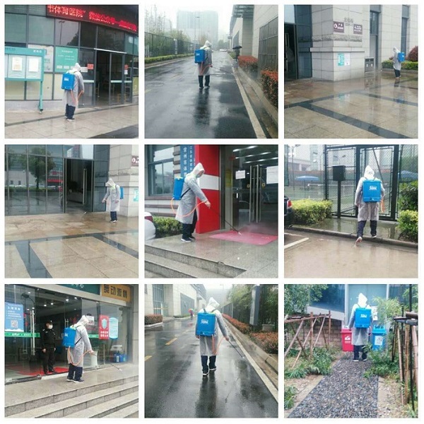 奧體物業(yè)服務(wù)中心全力配合甲方,對來館人員做好登記、測量體溫等常規(guī)工作。此外我們專門配備了幾臺打藥機,并對每天負責(zé)消殺的保潔進行培訓(xùn),另增加了日常消殺次數(shù),每天早中晚三次對奧體各個角落進行噴灑。打藥機裝滿消毒液大約有五六十斤,每天三次,是個不小的工作量。但保潔們?nèi)蝿谌卧,無論刮風(fēng)下雨,每天按時消殺,盡自己的力量為這個大環(huán)境做出自己的的貢獻。在消殺的時候遇到來運動的市民,他們都會善意提醒大家要戴好口罩,不要放松警惕。市民們看到保潔天天消殺,十分放心,覺得這里很安全。