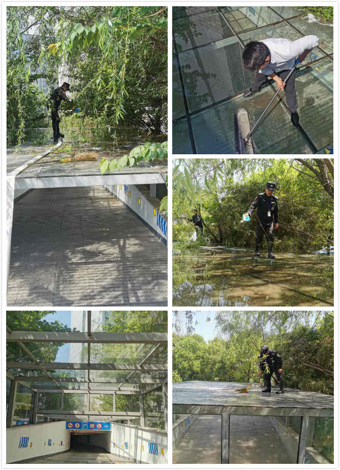 五一節(jié)后剛上班,天氣炎熱,公路事業(yè)發(fā)展中心項(xiàng)目部的丁主任親自帶領(lǐng)物業(yè)工作人員去清洗車(chē)庫(kù)頂棚。