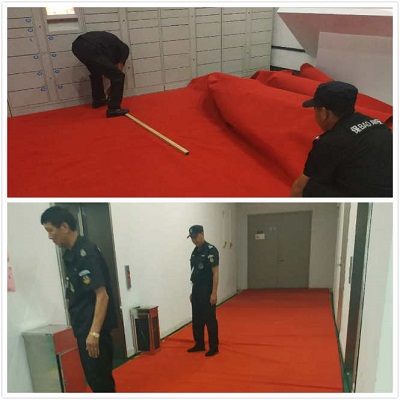 看到這個(gè)情形,高正集團(tuán)水務(wù)大廈項(xiàng)目部管理人員立即繃起了緊張的玄,防汛任務(wù)就在眼前,地下車庫(kù)絕不能出現(xiàn)水漫金山的現(xiàn)象。管理部立即排查地下車庫(kù)南北出入口處的水坑下水是否流暢,是否有積水。經(jīng)過仔細(xì)查看,由于水務(wù)的設(shè)施還是比較完善的,基本沒有造成下水不暢的問題,但是地下庫(kù)的油漆地面返潮造成路面打滑,對(duì)行人造成安全隱患。于是管理員們立即找來地毯,量好電梯通道的尺寸,把地下庫(kù)的電梯通道用紅色地毯全部鋪好,這樣就大大的降低了甲方上班人員路滑摔倒的危險(xiǎn)系數(shù),火紅的地毯不僅美觀而且安全。