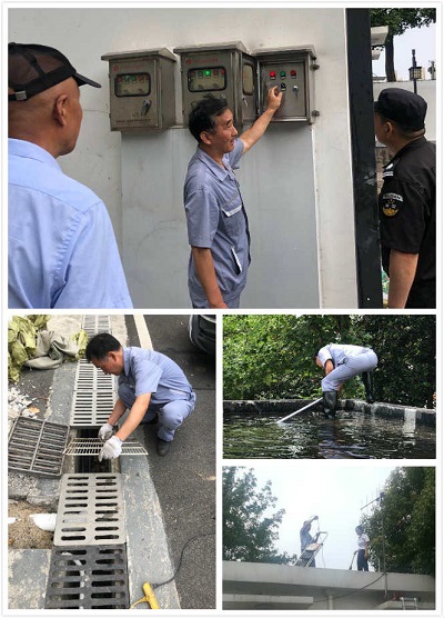 因水利投資項目部的地勢低于周邊近70公分,前幾年是逢大雨必淹的一個地方,各方位的積水倒灌。進入黃梅雨季,就預示著防汛號角的吹響。在入梅季的開始,項目部結合甲方本月的安全生產月活動,一起對院內的防汛設施設備進行疏通清理。