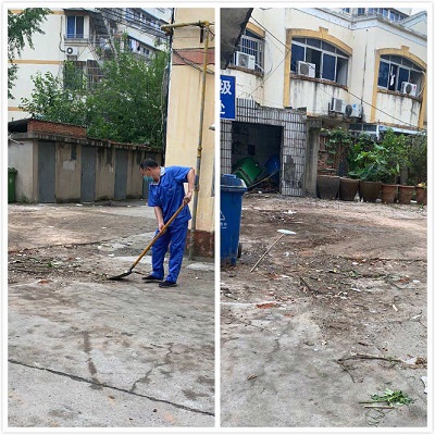 接到通知后,項(xiàng)目部保潔主管立刻到現(xiàn)場了解具體情況,決定下午就對(duì)家屬居住區(qū)進(jìn)行整改。從病區(qū)樓層抽調(diào)保潔員對(duì)小區(qū)的雜草進(jìn)行清理,機(jī)動(dòng)師傅將小區(qū)內(nèi)的建筑垃圾清理干凈,再派兩名外場保潔員對(duì)綠化帶內(nèi)的垃圾進(jìn)行清理。由于任務(wù)重,時(shí)間緊迫,所有員工齊心協(xié)力,任勞任怨,一直到晚上六點(diǎn)多才結(jié)束,每個(gè)保潔員也沒有因?yàn)檠舆t下班而感到不滿。