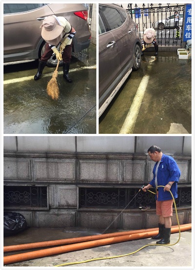 首先安排保潔部負(fù)責(zé)清理青苔,先噴灑專(zhuān)業(yè)的青苔去除劑,等青苔溶解后再清掃。工程部則配合使用水槍沖洗路面,并在相應(yīng)的路面上放好警示牌,提醒行人注意路面濕滑?紤]到窨井排出的水多少都有點(diǎn)異味,天氣炎熱,容易滋生蚊蠅害蟲(chóng)。所以項(xiàng)目部安排保潔每天對(duì)排水口進(jìn)行消毒,減少異味,同時(shí)對(duì)容易積水的路面,經(jīng)常清掃,以免再次滋生青苔。